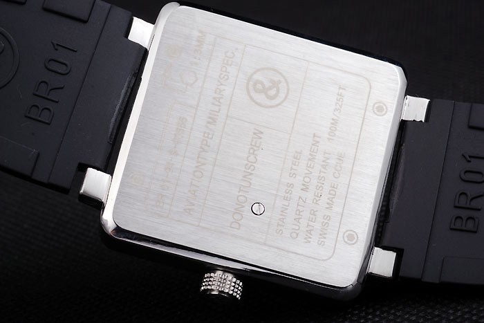 Tillbaka: borstat rostfritt stål skruvas ned tillbaka med Bell & Ross inscriptions