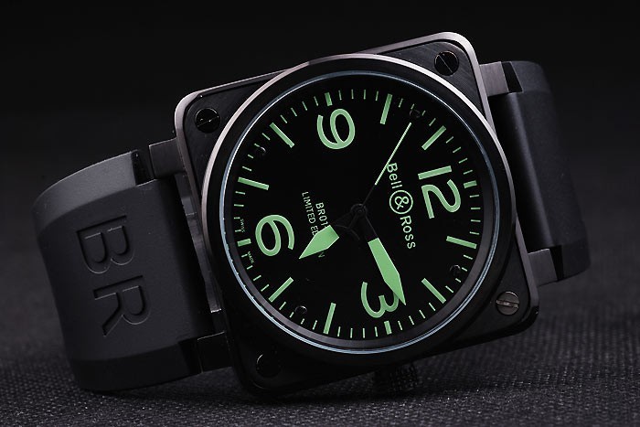 Bracelet: Svart gummiband med värme präglade logo, modellnummer och produkt kod och BR graverad jon-klädd krok-spänne spänne