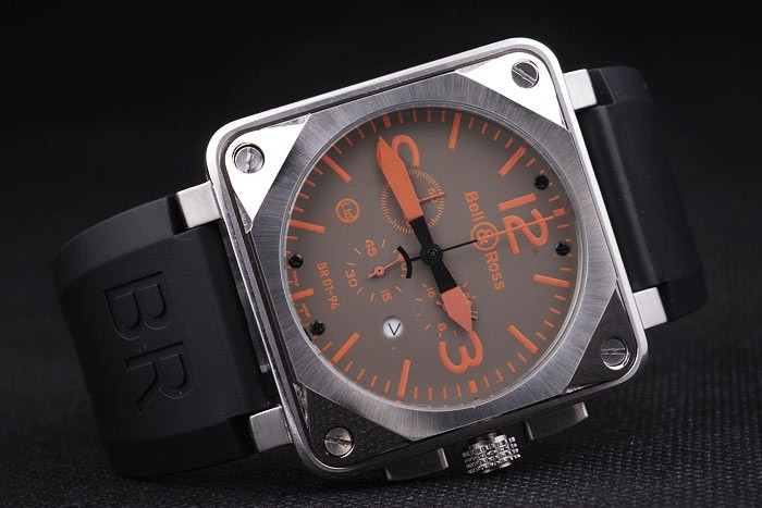Crown: rostfritt stål cutwork krona med Bell & Ross logotyp och en kvadrat krona på vardera sidan av huvud crown