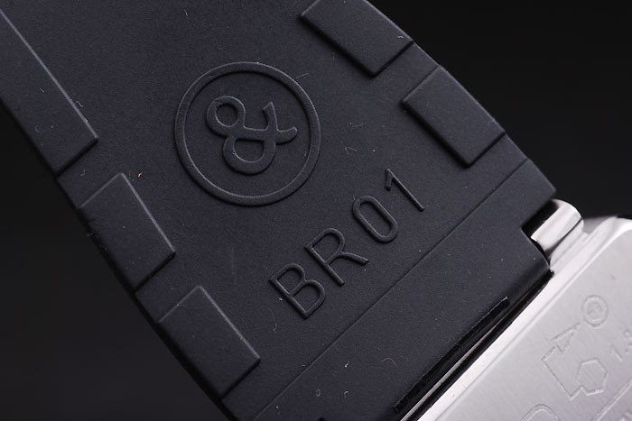 Crown: rostfritt stål cutwork krona med Bell & Ross logotyp och en kvadratisk krona på vardera sidan om huvud crown
