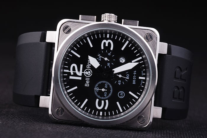 Crown: rostfritt stål cutwork krona med Bell & Ross logotyp och en kvadratisk krona på vardera sidan om huvud crown