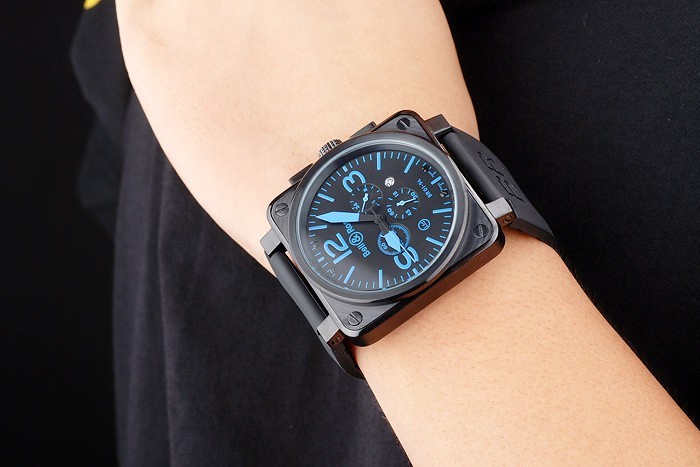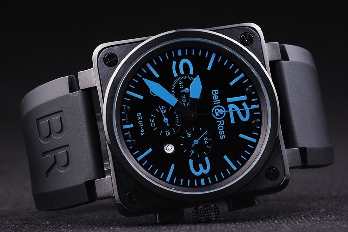 Crown: jon-klädd cutwork krona med Bell & Ross logo och en kvadratisk krona på vardera sidan av den huvudsakliga crown