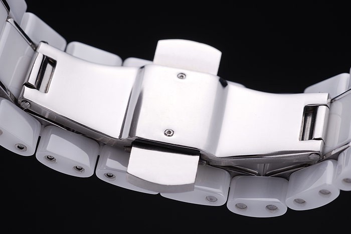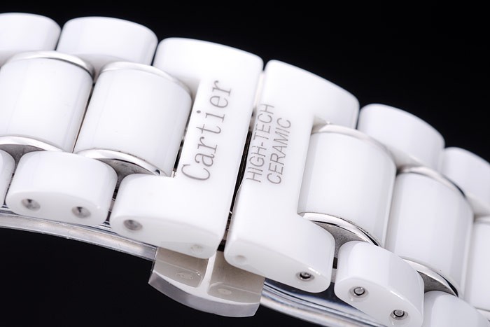 Bracelet: Vit keramik och rostfritt stål länk armband med Cartier High-Tech keramiska graverad dolda tryckfrigör clasp