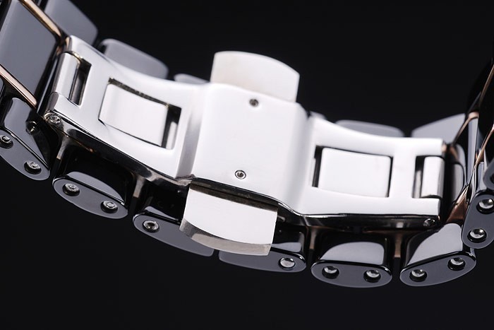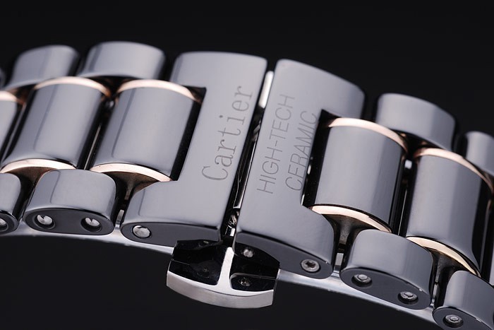 Bracelet: Svart keramik och rose-guld länk armband med Cartier High-Tech keramiska graverad dolda tryckfrigör clasp
