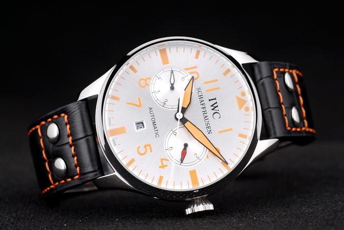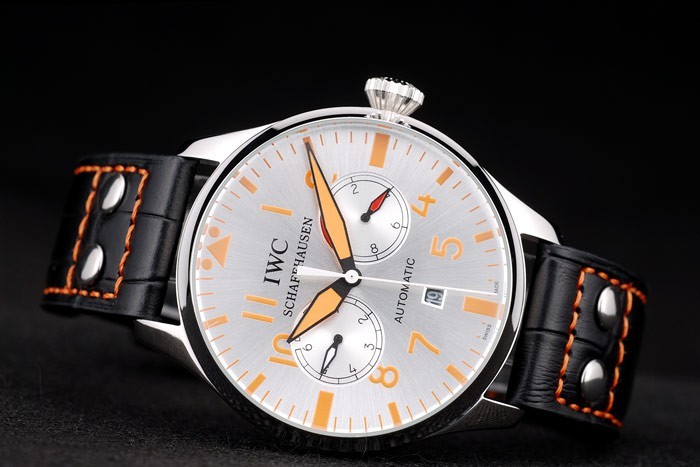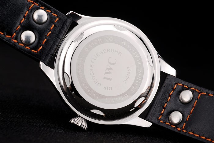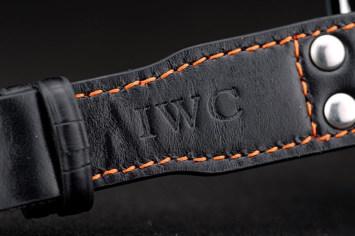 Bracelet stål: IWC värme präglat svart krokodil läderrem med orange sömmar tråd och graverade borstat rostfritt stål krok-IWC clasp