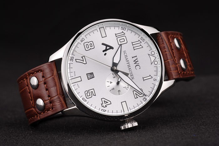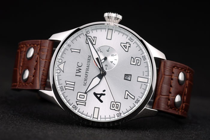 Bracelet: IWC värme präglat brunt krokodil läderrem med IWC graverad borstat rostfritt stål krok-spänne clasp