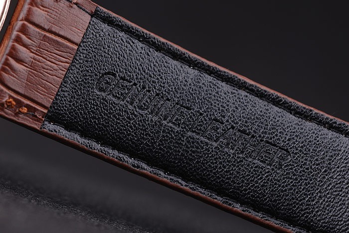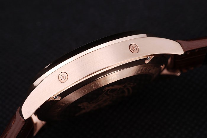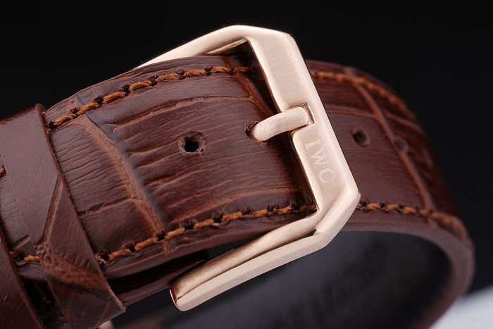 Bracelet: Brun krokodil läderrem med IWC inskriven rose-guld krok spänne clasp