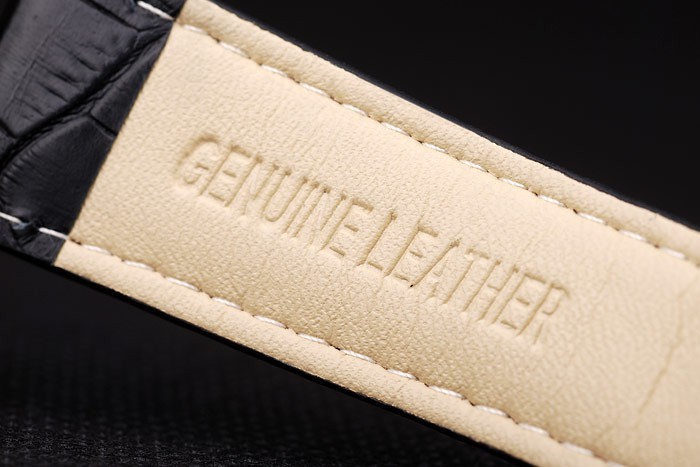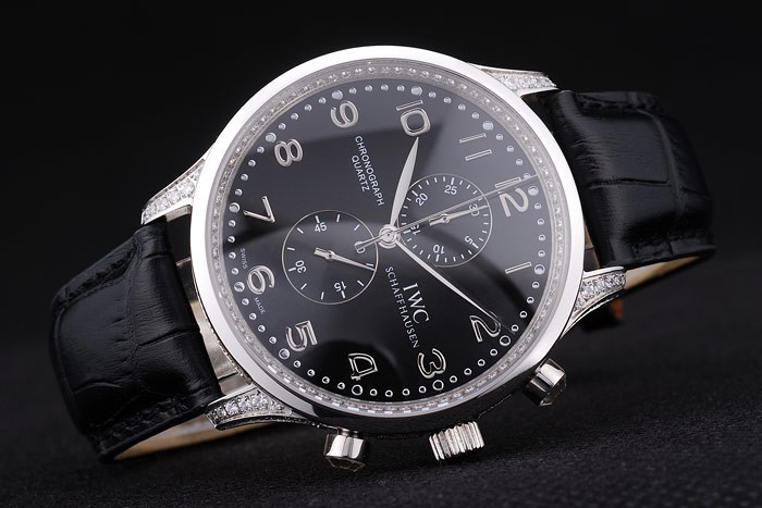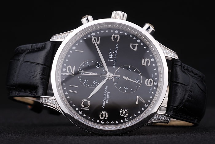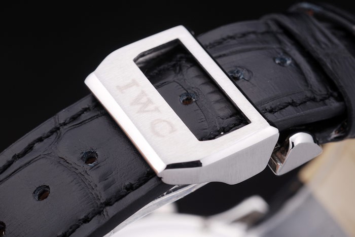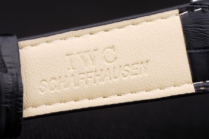 Bracelet: IWC Schaffhausen värme präglat svart krokodil läderrem med IWC inskrivet rostfritt stål krok spänne clasp
