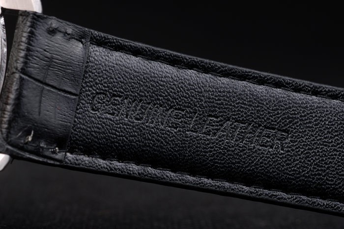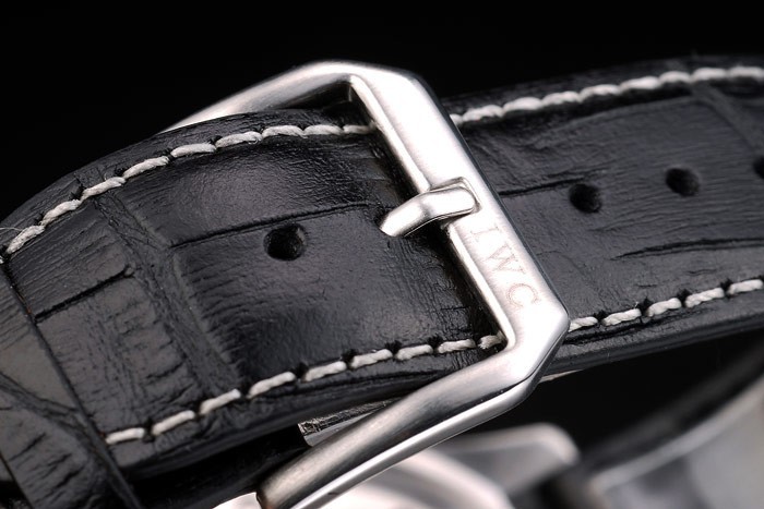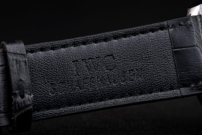 Bracelet: IWC Schaffhausen värme präglat svart krokodil läderrem med vit tråd sömmar och IWC inskrivet rostfritt stål krok-spänne clasp