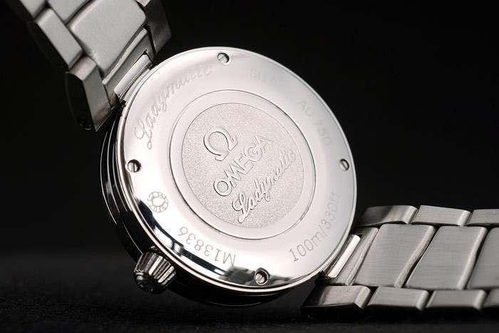 Tillbaka: Polerat rostfritt stål skruvas ned tillbaka med Omega Ladymatic engraving