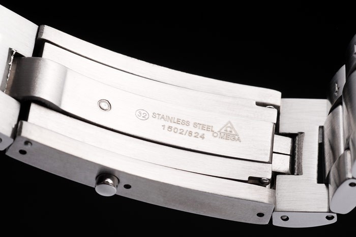 Crown: borstat rostfritt stål cutwork krona med Omega logotyp plus en extra krona på den motsatta toppen corner