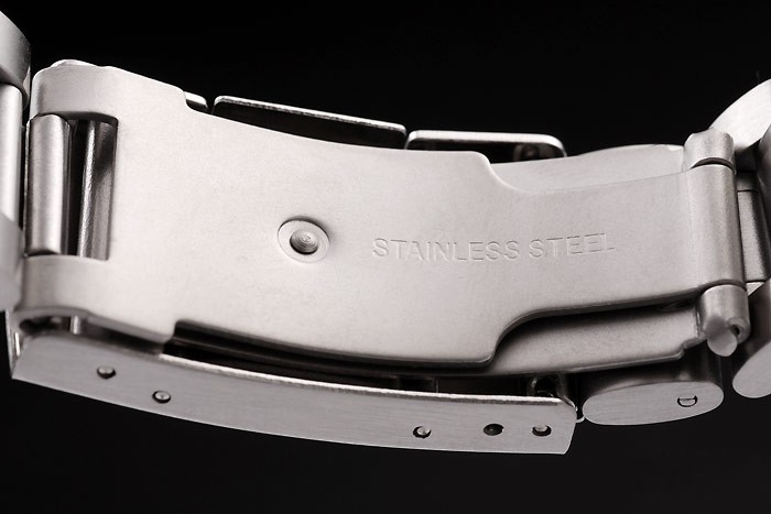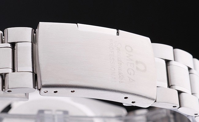 Crown: polerat rostfritt stål cutwork krona med Omega logotyp plus två mindre kronor på ömse sidor om it