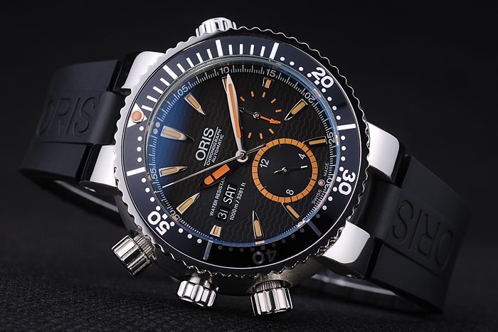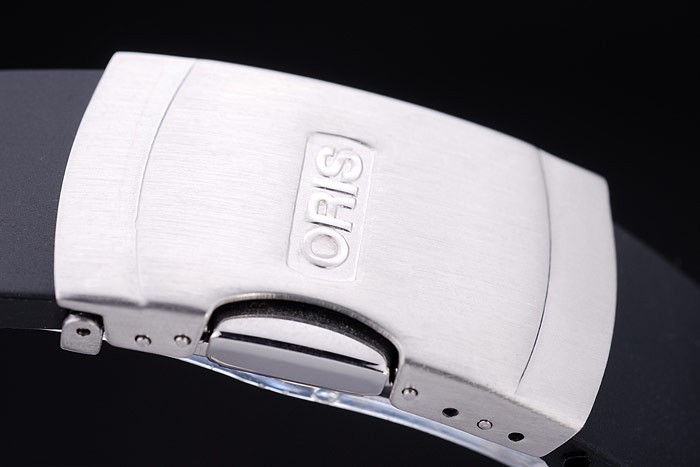 Bracelet: Svart gummiband med Oris graverad rostfritt stål utfällbar i tryck frigör clasp