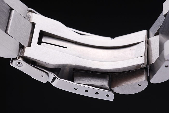 Bracelet: borstat och polerat rostfritt stål länk armband med driftsättning Oris inskriven clasp