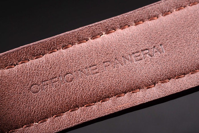 Bracelet: Brun läderrem med värme präglade Officine Panerai Italien stämpel och borstat hak- rostfritt stål spänne spänne med Panerai engraving