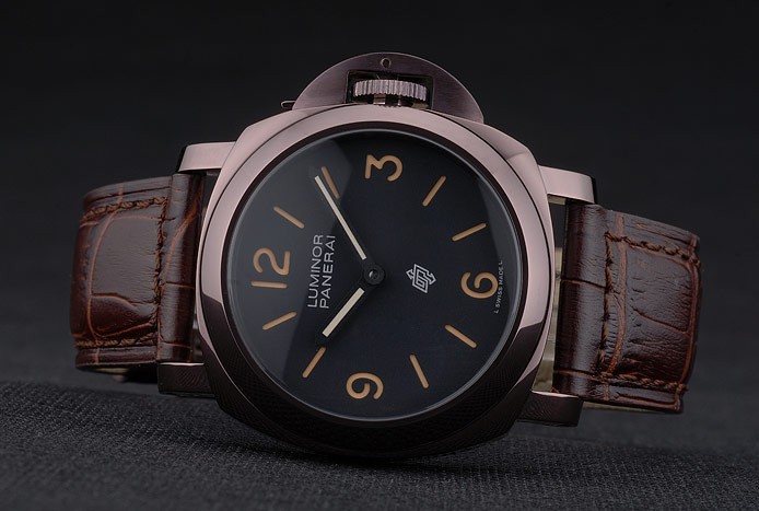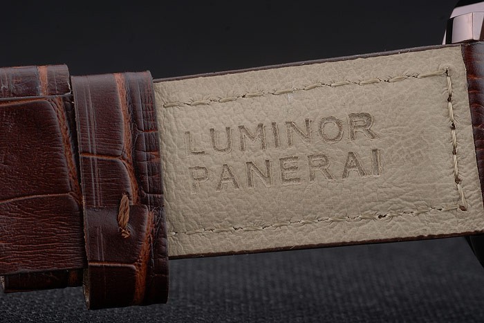 Bracelet rostfritt stål: Panerai Luminor värme präglat brunt krokodil läderrem med brunt emalj Panerai graverad krok spänne clasp