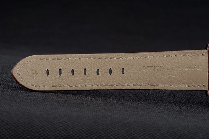 Bracelet rostfritt stål: Officine Panerai värme präglat brunt krokodilläderband med vit tråd sömmar och brun emalj Panerai graverad krok-spänne clasp