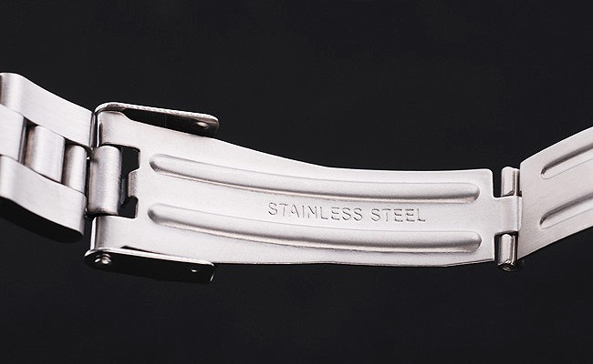 Bezel: Polerat rostfritt stål med graverad arabiska siffror markerar minutes