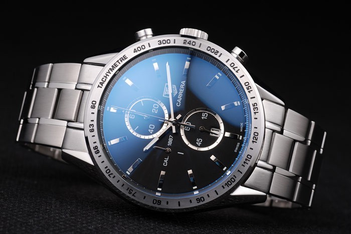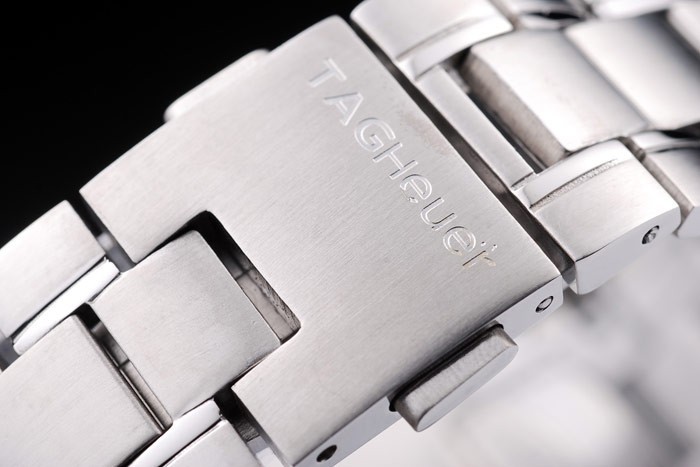 Crown: rostfritt stål cutwork krona med Tag Heuer logotyp och två tryckknapps kronor på ömse sidor om it