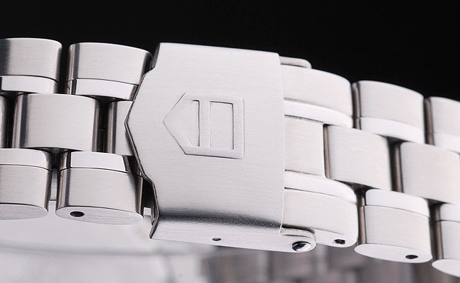 Bracelet: Borstad och polerat rostfritt stål länk armband med Tag Heuer graverad fold-in clasp