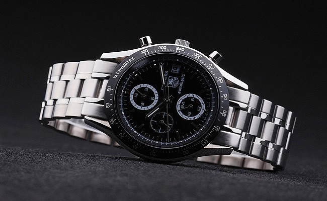 Bezel: borstat rostfritt stål bezel med svart emaljerad tachymeter