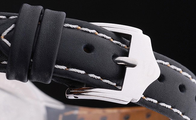 Bracelet: Strukturerad vit läderrem med värme präglad stämpel och Monaco Tag Heuer graverad krok spänne clasp