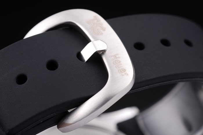 Bracelet stål: Svart gummiband med borstat rostfritt stål krok spänne spänne med Tag Heuer inscription