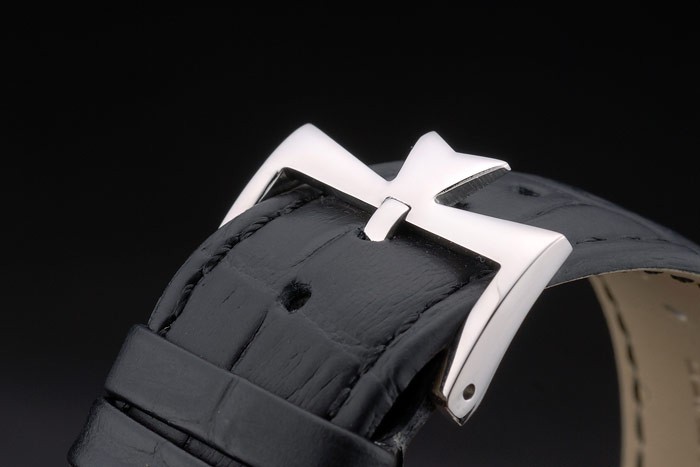 Bracelet: Vacheron Constantin och logotyp värme präglat svart krokodil läderrem med polerat stål logo rostfritt krok-spänne clasp