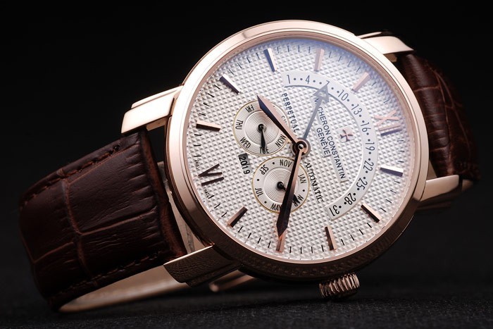 Bracelet: Brun krokodil läderrem med värme präglade stämpel Vacheron Constantin och Rose- guldpläterad Vacheron Constantin logo krok spänne clasp