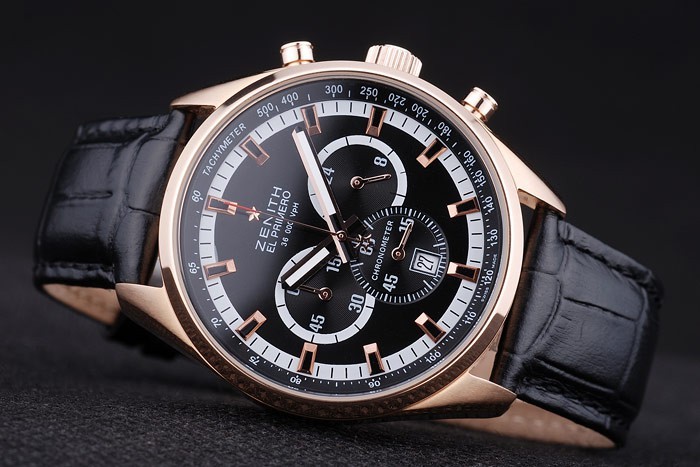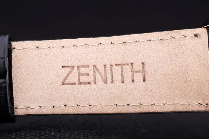 Crown: Rose-guldpläterad cutwork krona med Zenith stjärna logotyp gravyr och två mindre runda tryckknapps kronor på ömse sidor av it